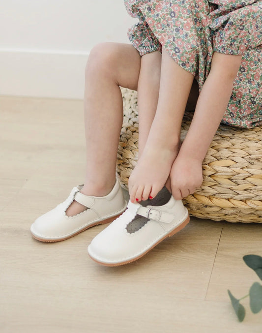 Lamour | Selina White Scalloped T-Strap Mary Jane