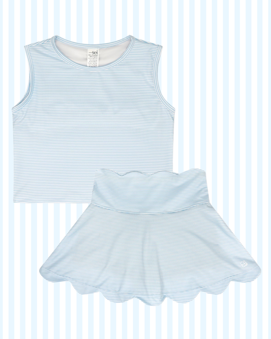 SET | Zoe Scalloped Skort - Cotton Candy Blue Ministripe